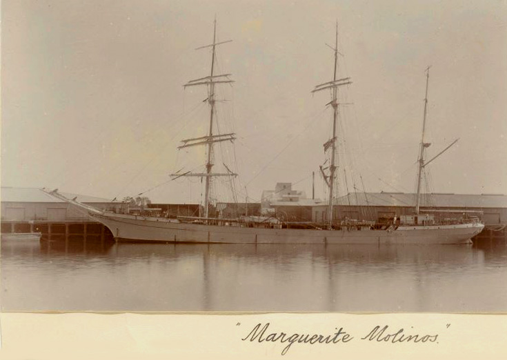 C’est au retour d’un voyage au nitrate que le trois-mâts barque Marguerite-Molinos démâta au large des Açores. Pour ce 16e voyage, il avait été armé au long-cours le 21 décembre 1910 au Consulat de France à Cardiff (Pays de Galles, Royaume-Uni) et administrativement au Havre le 30 janvier 1911, n° 44 ; il fut désarmé le 8 décembre 1911 au Consulat de France à Hambourg, puis administrativement au Havre, le 12 décembre 1911 , n° 451.