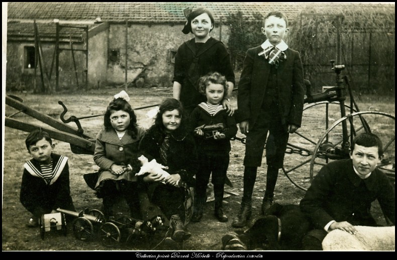 Petites contributions au post, avec tout d'abord une photo d'enfants et de soldats du 212e RI au printemps 1915: