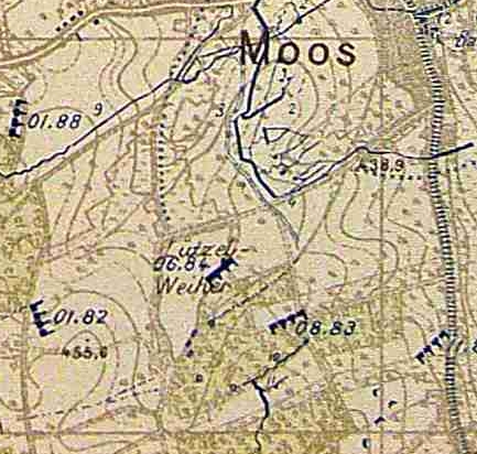 06.84 qui d'une part n'est pas au bon endroit sur la carte, mais qui en plus se compose de 2 sapes qui rejoignent un vulgaire abri en tôle métro à -2 mètres sous terre. Je veux bien croire qu'il y ai eu une position d'artillerie ici comme mentionné sur la carte, mais bon, de vous a moi, bonjour la cible pour les français, c'est tout juste si c'est pas une incitation a tirer dessus tellement c'est voyant ! Pensez-vous, un étang comme repère, plus royal ce n’est pas possible !