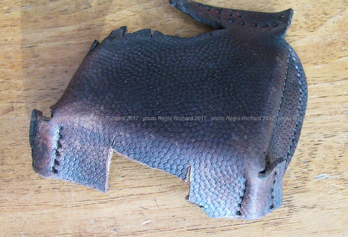 Découpe d'un porte-fourreau de baïonnette de fusil Gras (?) avec un très beau cuir lissé, marqué Herrenschmidt, Paris