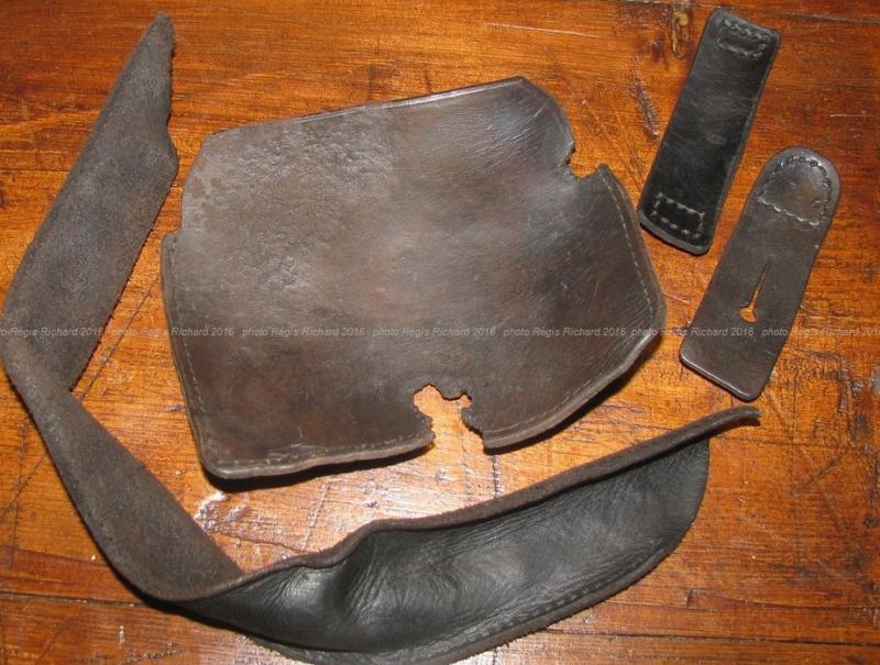 Les cuirs souples de cartouchières françaises ou de brodequins sont privilégiés pour en tirer des lacets ; les sangles, bretelles et ceinturons sont ajustés en supprimant la longueur inutilisée ; d'autres découpes restent sans explication, sauf peut-être à se défaire rapidement d'un équipement devenu inutile.