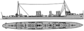 Caractéristiques : 6 000 cv ; 90 x 8,4 x 2,5 m ; 5 chaudières White-Forster ; 2 hélices ; 30 nds ; 102 h.