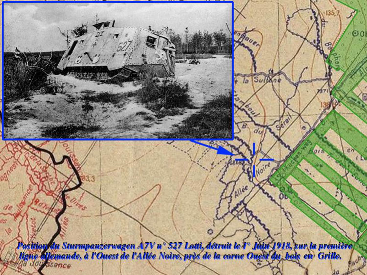 Le commentaire "Tank échoué dans la 1° Ligne allemande" dénote une très mauvaise connaissance du sujet,