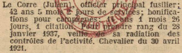 Rayé des contrôles de l’activité le 29 janvier 1937.