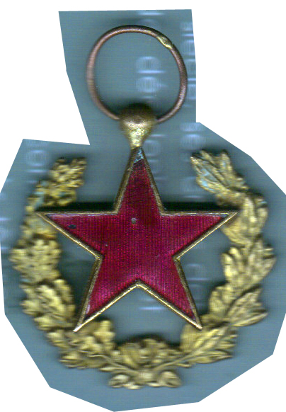 Une des nombreuses variantes de la médaille des blessés. Seul le ruban est contemporain du conflit (1916). La création de la médaille date des années 1920.
