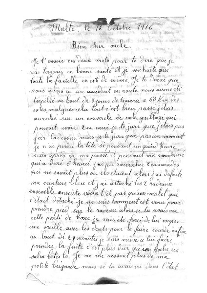 Déjà inscrite il y a 5 ans, j'avais promis de joindre la lettre de l'oncle de ma grand-mère paternelle (Ernest Eugène Revol) qui était sur le Crosshill en octobre 1916. Après quelques problèmes familiaux je me replonge dans la généalogie familiale à la demande de mes enfants. Voici donc, en pièce jointe, la lettre qui, à l'époque, était jointe avec une carte postale des "silver gate" de l'église de La valette. Vous pardonnerez le langage de mon arrière grand oncle qui, d'après son livret militaire, était de niveau d'instruction 2. Ernest Revol était marié à Estelle Rigard-Cerizon. Ils avaient une petite fille, Raymonde. Je joint également leur photo. Ernest sera effectivement assassiné le 31 juillet 1918 à Lyon au cours d'une permission. Cet évènement a beaucoup marqué notre famille.