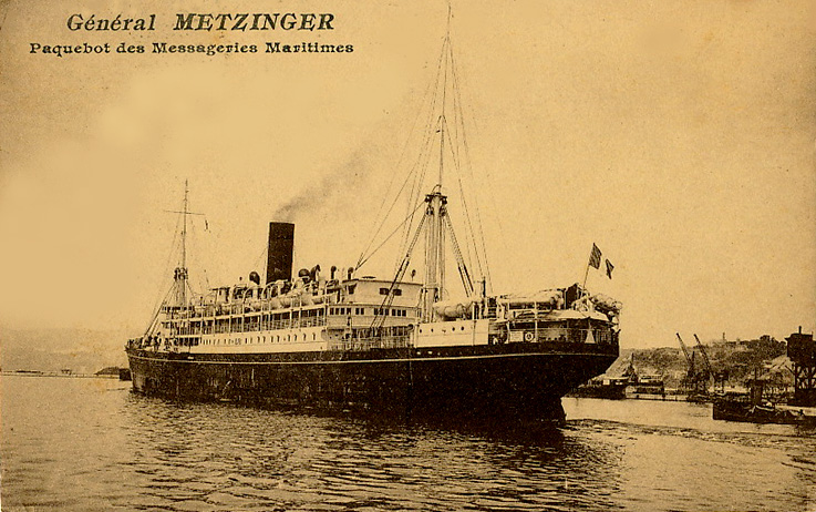 Après avoir été transformé à La Seyne-sur-Mer par le chantier de la Société des forges et chantiers de la Méditerranée, afin d’être dorénavant chauffé au mazout (L’Ouest-Éclair ― éd. de Rennes ―, n° 8.131, Mercredi 19 décembre 1923, p. 7, en rubrique « Nouvelles maritimes »), et après avoir été francisé sous le nom de Général-Metzinger, il fut affecté à la ligne postale de l’Océan Indien à partir de la mi-1924.
