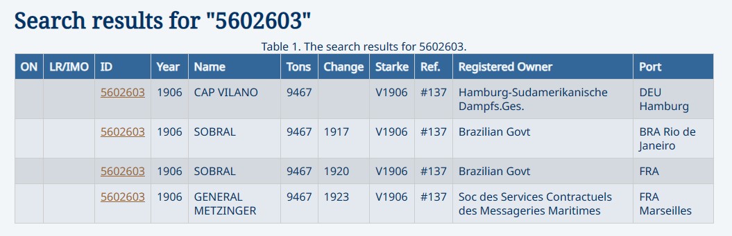 Sobral ― Paquebot brésilien, ex-Cap-Vilano allemand ― Flotte de l’État (1917~1922). Futur Général-Metzinger ― Services contractuels des Messageries maritimes (1922~1940).