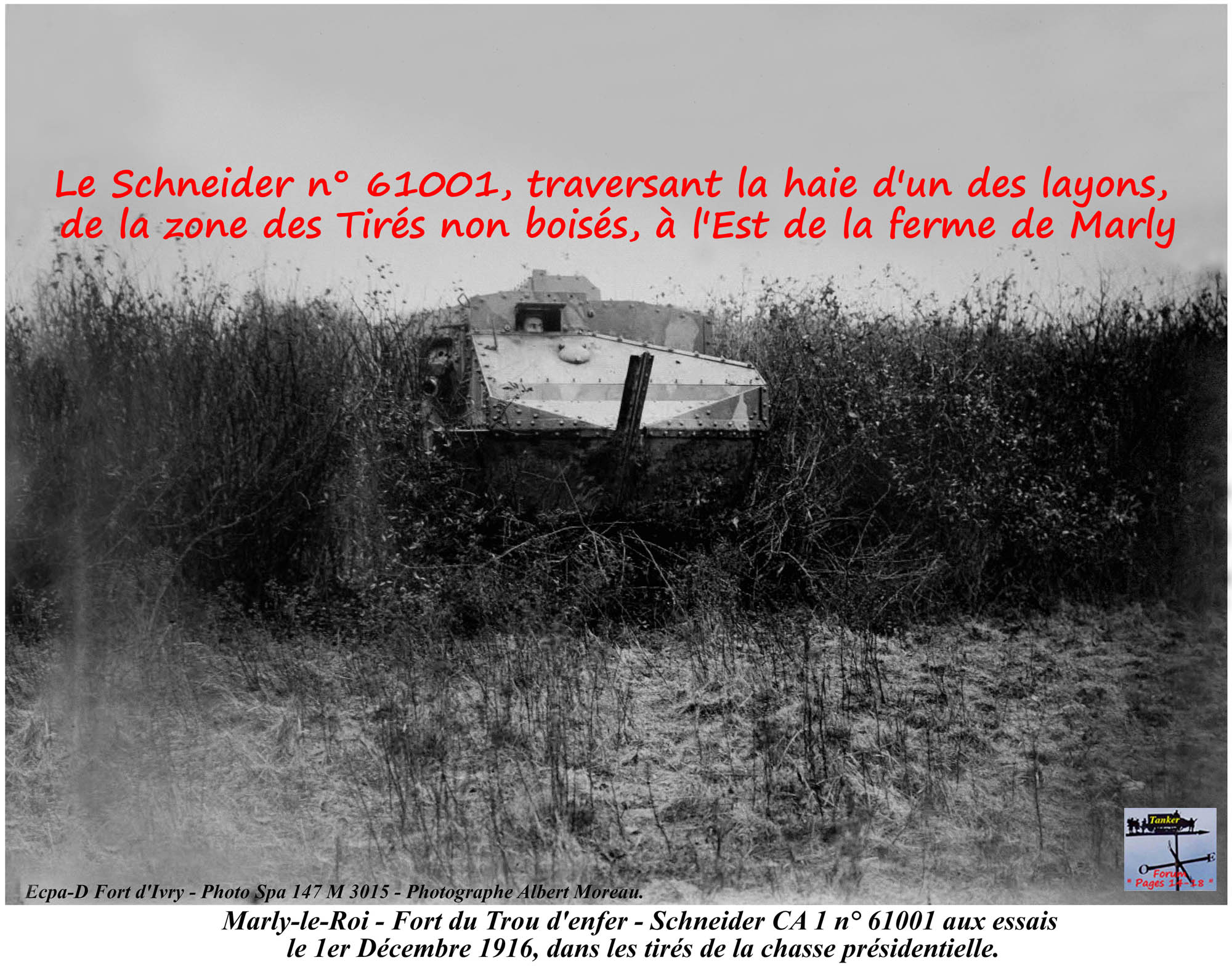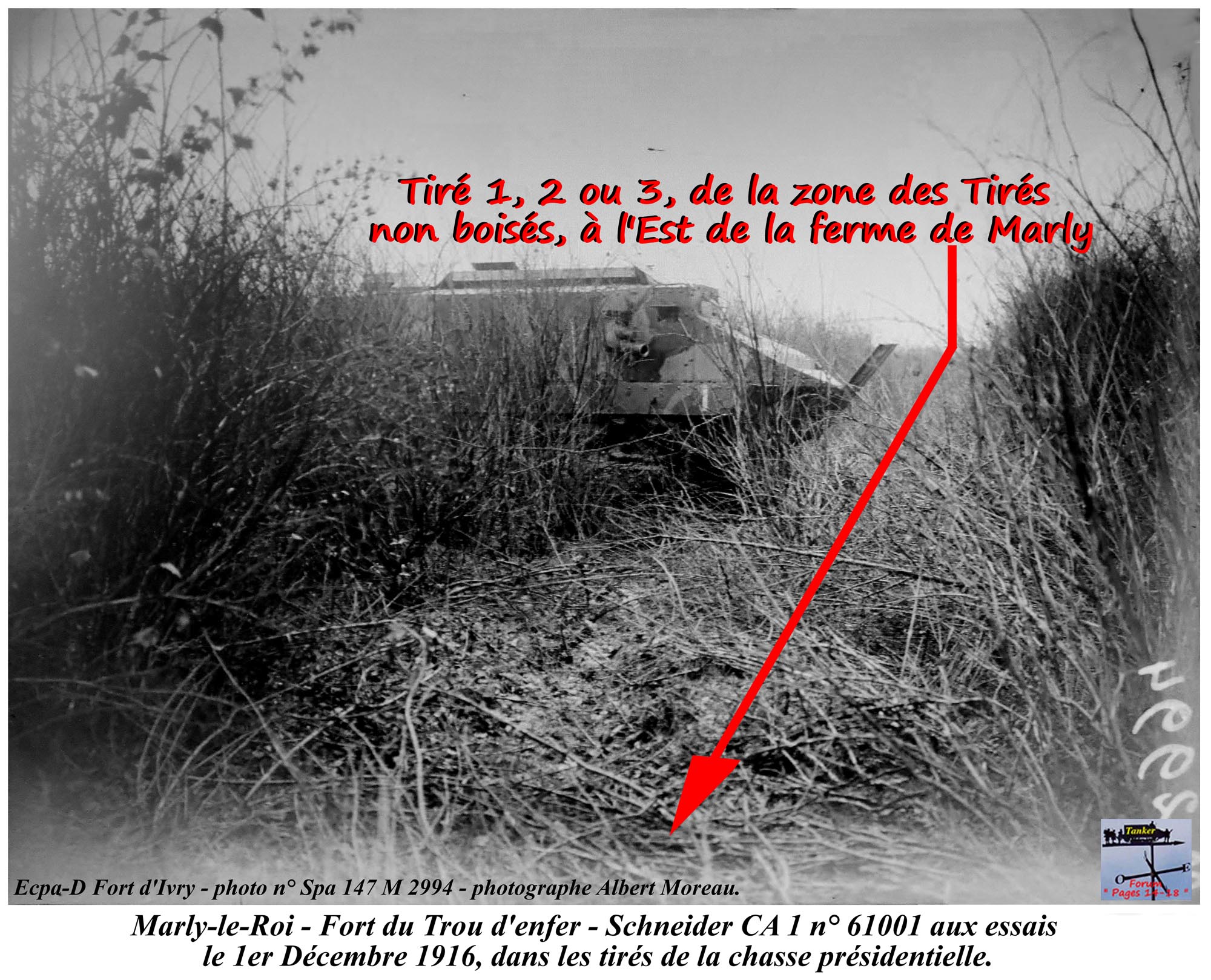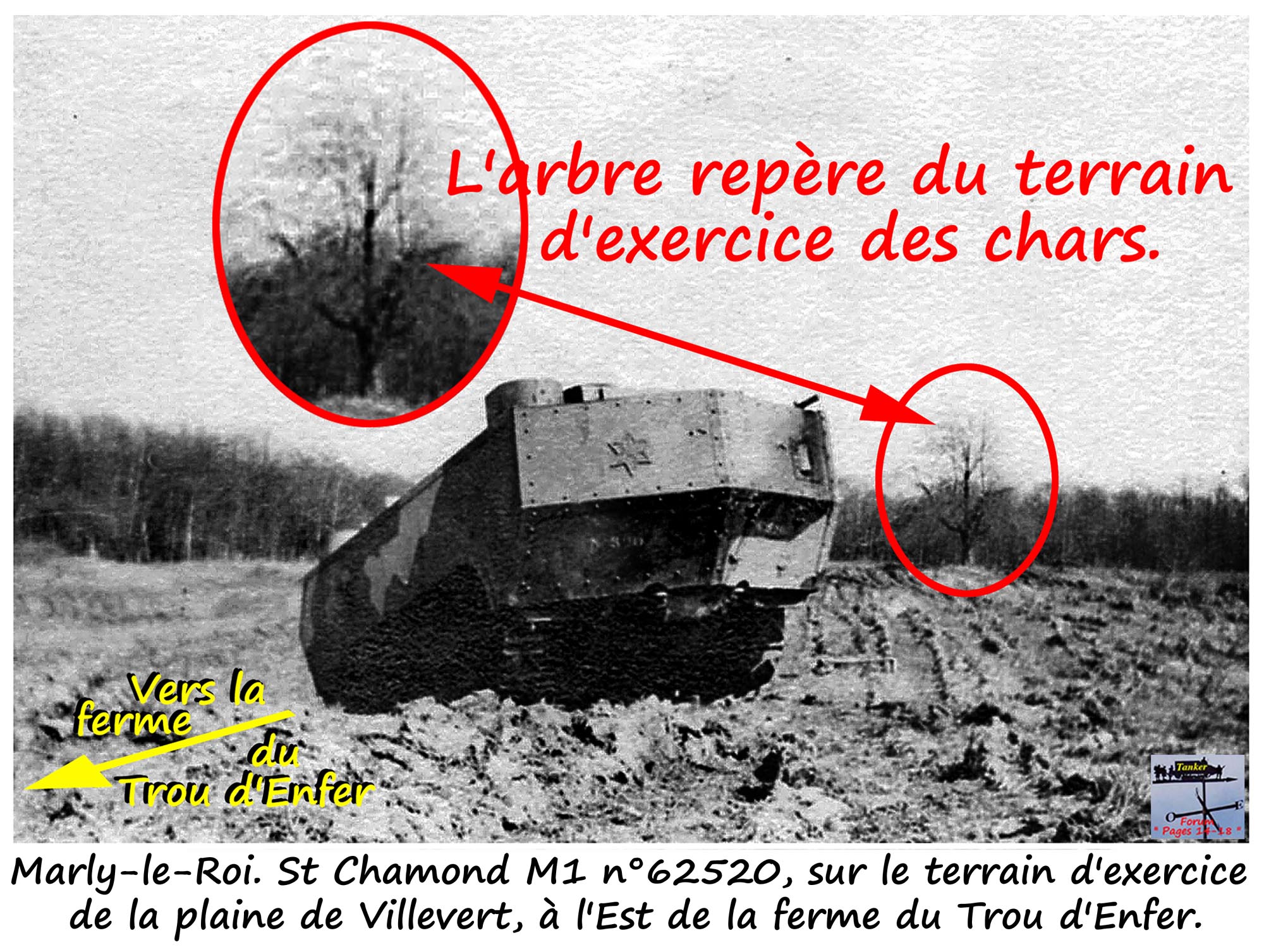 Après les essais au polygone de Vincennes(février à Juin 1916), du chassis prototype, construit par la Section Technique Automobile, un lieu plus propice à la conservation du secret fut recherché et, avec son périmétre ceint de murs, l'ancienne chasse de Louis XIV, de la forêt de Marly, qui se prétait mieux aux souhaits du Service Automobile du Général Mourret.