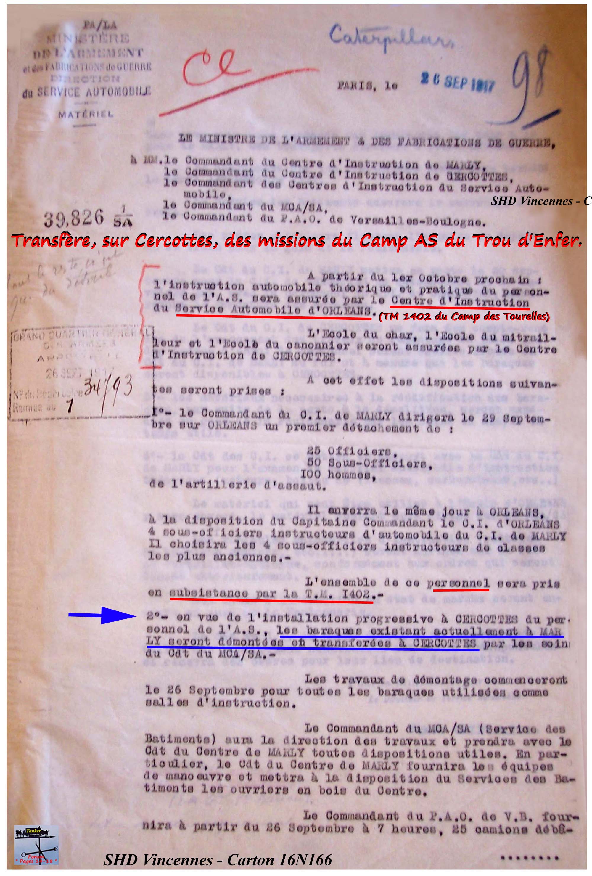 Dès le mois de février 1917, la suppression de Marly et de son transfert à Cercottes est envisagée et l'action du Général Mourret retardera de 10 mois cette suppression.