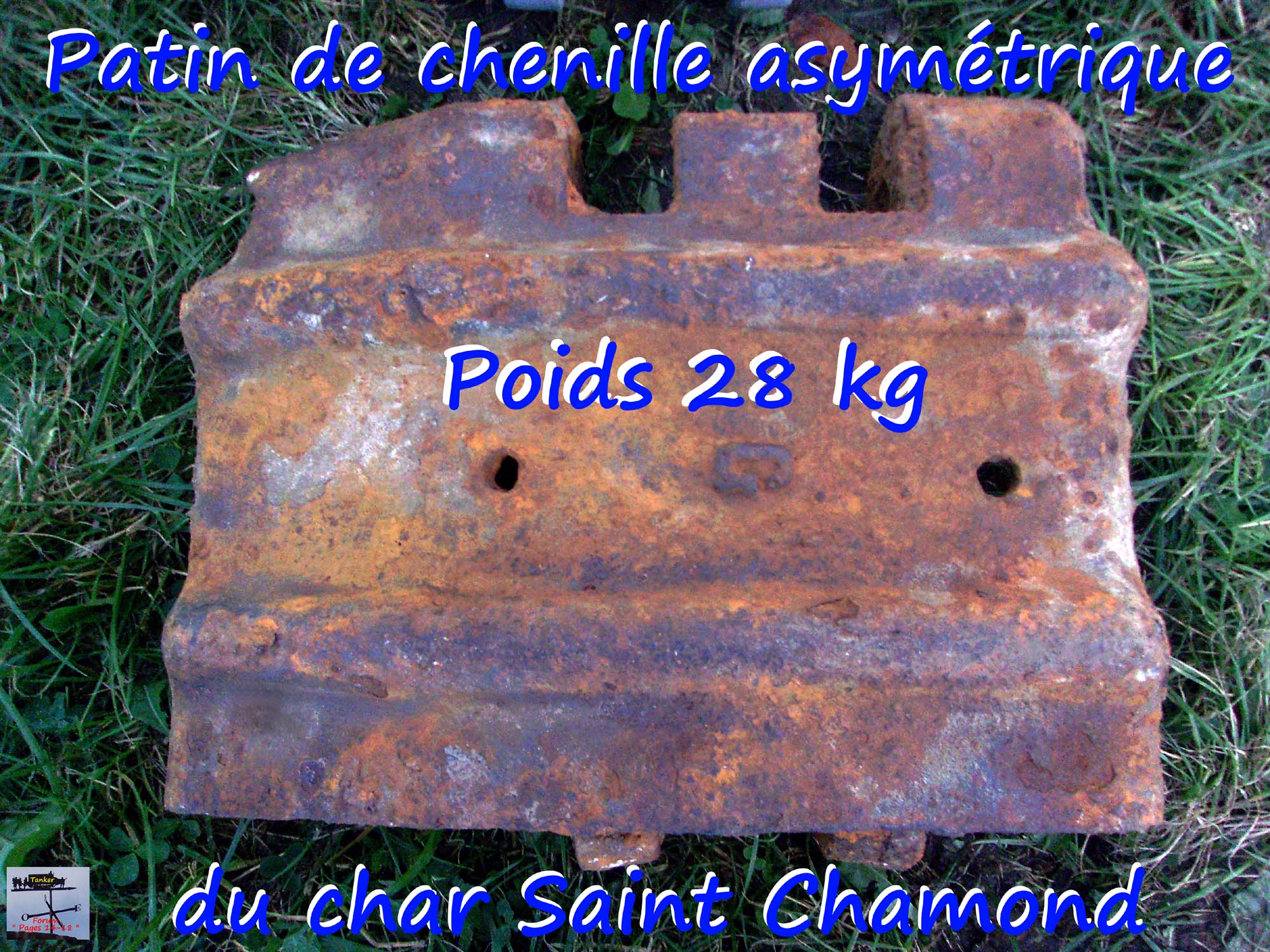 Le poids de ce patin (28 kg) était déjà conséquent, même à côté des 45 kg du patin élargi, le modèle que l'on trouve sur le char Saint Chamond M2, du Musée de Saumur.