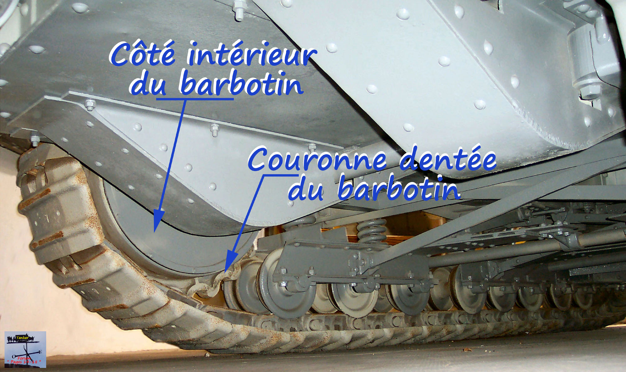 Barbotin et poulie de tension, des chars utilisant les chenilles étroites, étaient-ils moins larges ou, la mise en service des patins élargis nécessitaient-ils aussi de changer le barbotin et la poulie de tension des chars qui s'équipaient de chenilles élargies ?