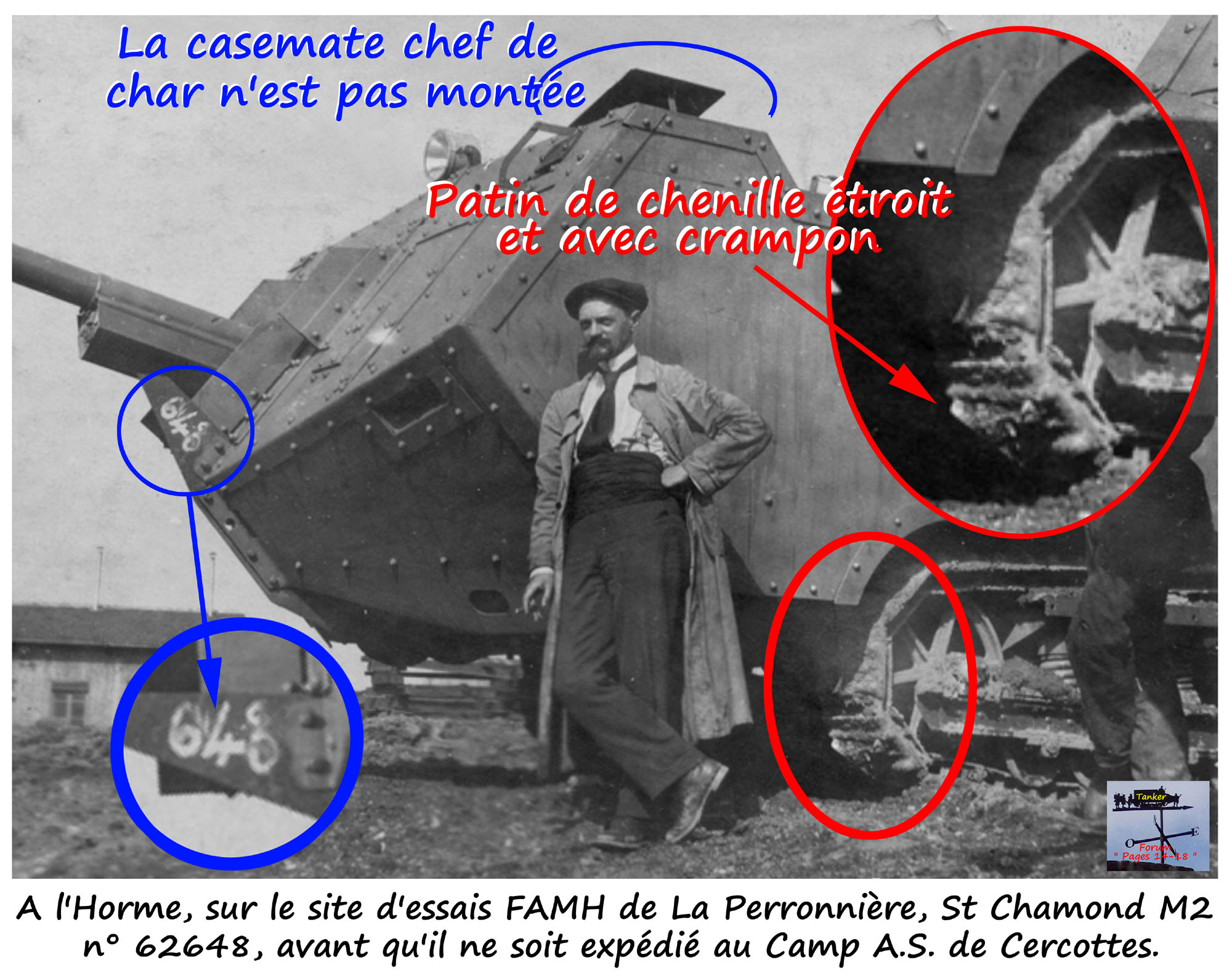 Ci-dessous, le Saint Chamond M2 n° 62706 photographié à Cercottes, et déjà équipé de chenilles élargies.