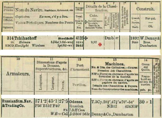 TCHIHATCHOFF [II] — Paquebot mixte — Compagnie russe de navigation à vapeur et de commerce, dite « Ropit ».