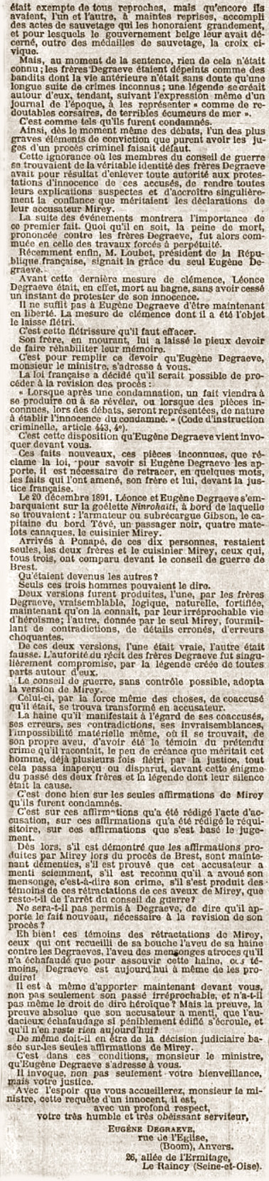 L'auteur ajoute un peu plus loin : « Eugène Degrave est depuis quelque temps au service du prince de Monaco ; on a tout dernièrement annoncé son mariage ».