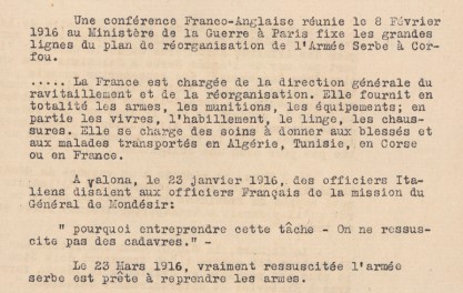 En décembre 1915, la France organise une mission militaire pour évaluer la situation de l'Armée Serbe et proposer toutes mesures utiles (notamment pour son évacuation).