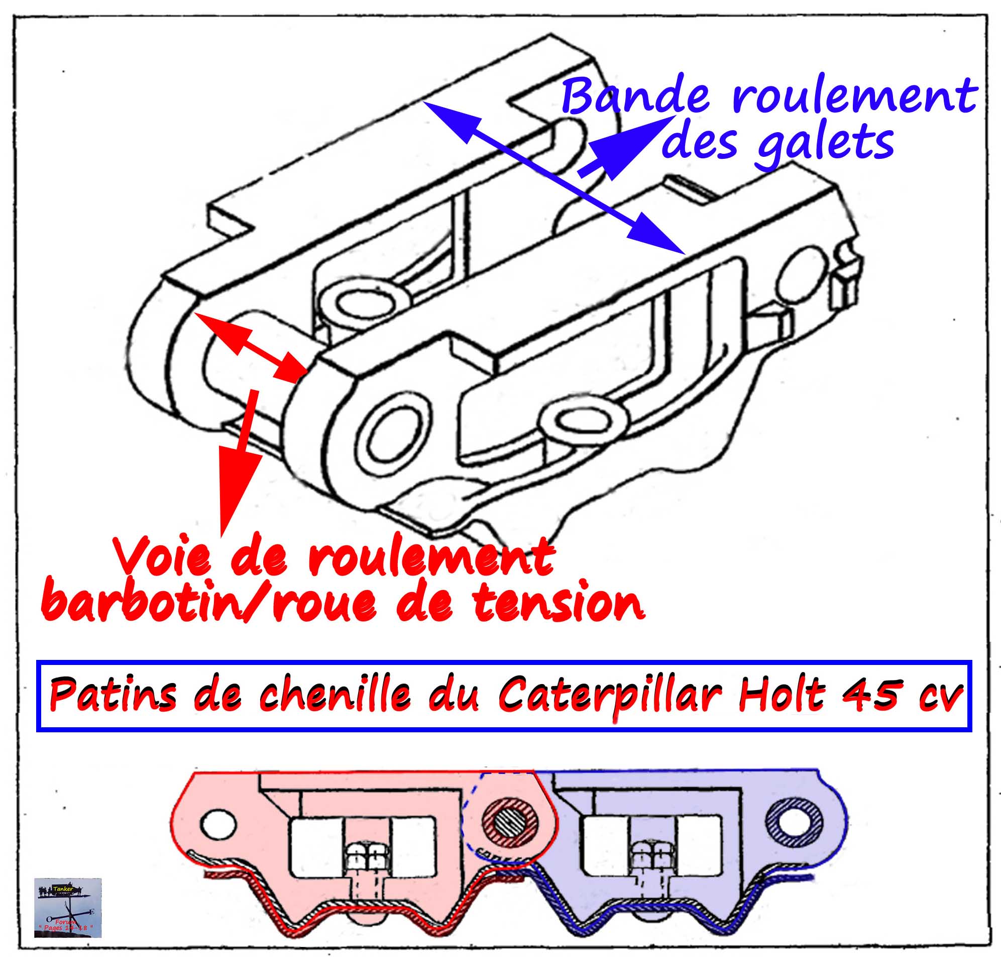 Les patins des chars Schneider et Saint Chamond, sont la copie des patins du caterpillar Holt (dont schneider, avait acquis la licence). Totalement dérivé du chassis d'expertise construit par le Lt Fouché, des Holt 45 cv, le char Saint Chamond possède aussi un patin dérivé de celui du Holt.