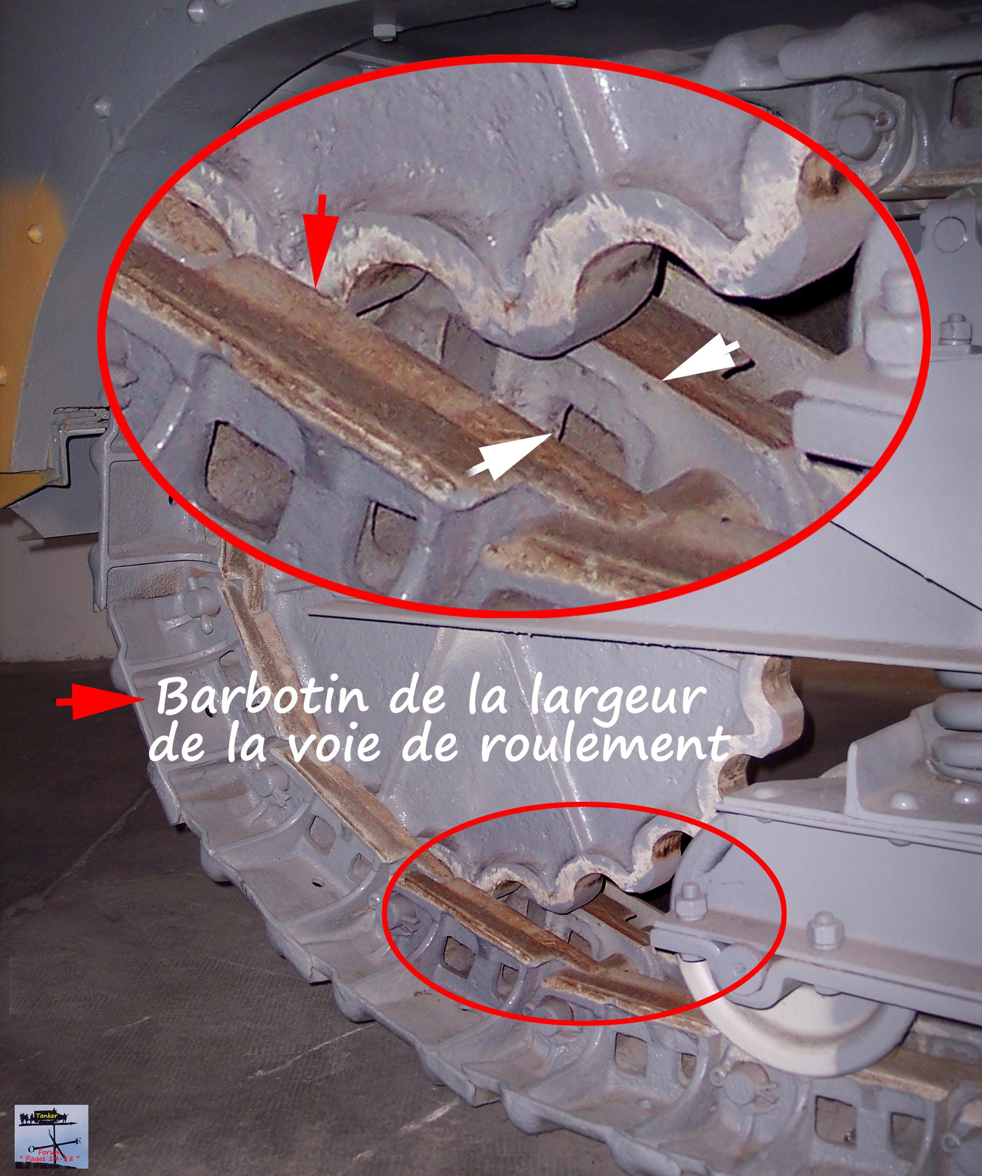 Le barbotin et la poulie de tension des 100 chars équipés du patin de type 3 (les chars 62701 à 62800) sont, pour ne pas avoir de jeu, de la largeur de 90 mm de la voie de roulement de ce patin.