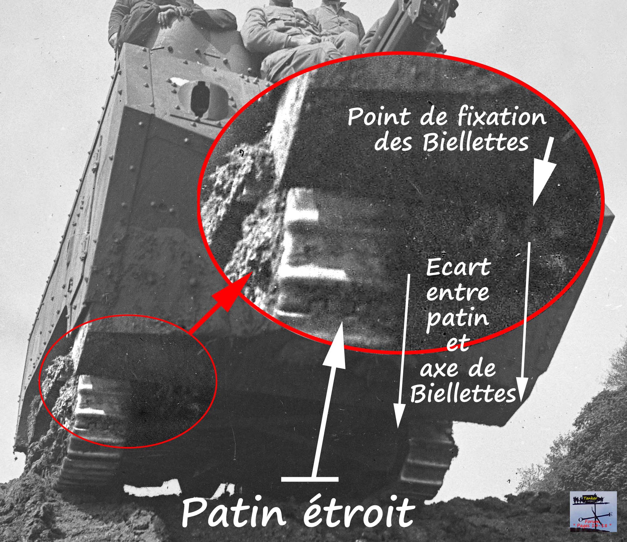 Il est, sur les photos d'époque, souvent difficile d'identifier correctement le type de patin montés sur les chars Saint Chamond.