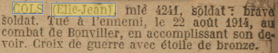COLS Elie Jean né le 06/10/1882
