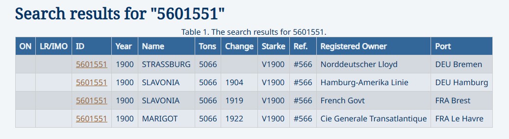 Voici la fiche Miramar du navire SLAVONIA, futur MARIGOT de la Compagnie Générale Transatlantique :
