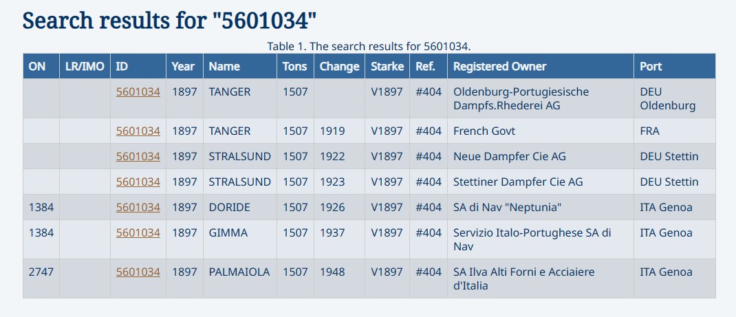 Voici la fiche Miramar du navire TANGER, futur STRALSUND de la compagnie allemande Neue Dampfer Cie AG :