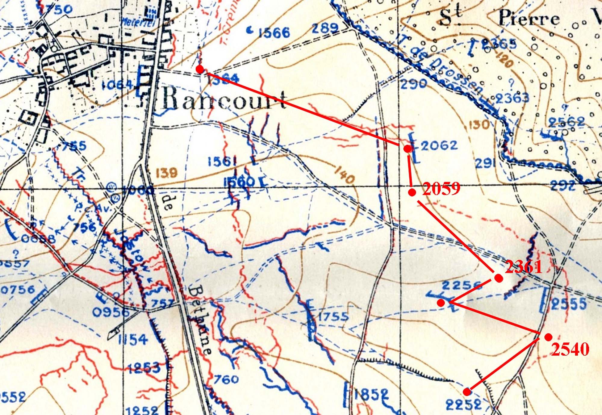 Simplement pour visualiser 2062 et 2363 à l'Est de Rancourt (légèrement sud / sous le mot SAINT de Saint-Pierre-Vaast)