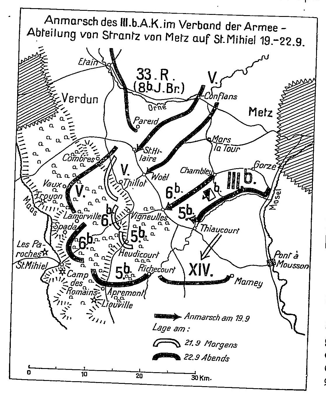 Selon l'histoire du régiment, l'attaque fut étonnamment annulée le 13 septembre 1914. Ceci se justifie par les regroupements dus à la bataille de la Marne perdue et au danger d'être encerclé depuis Verdun.