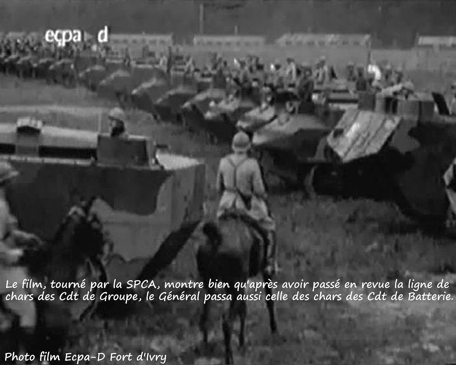 Dans un premier temps, les opérateurs (film et photographie) étaient placés près des Saint Chamond caisson des SRR, à l'extrémité Est du stationnement des chars Schneider et donc, les chars Saint Chamond des Groupements n° X et XI n'ont pas été filmés dans cette première phase de la prise d'armes.