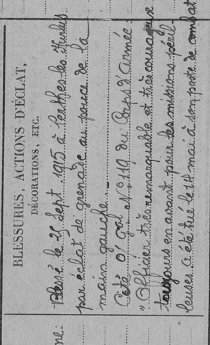 Paris, 14 août 1916. - est inscrit aux tableaux spéciaux de la MEDAILLE MILITAIRE :