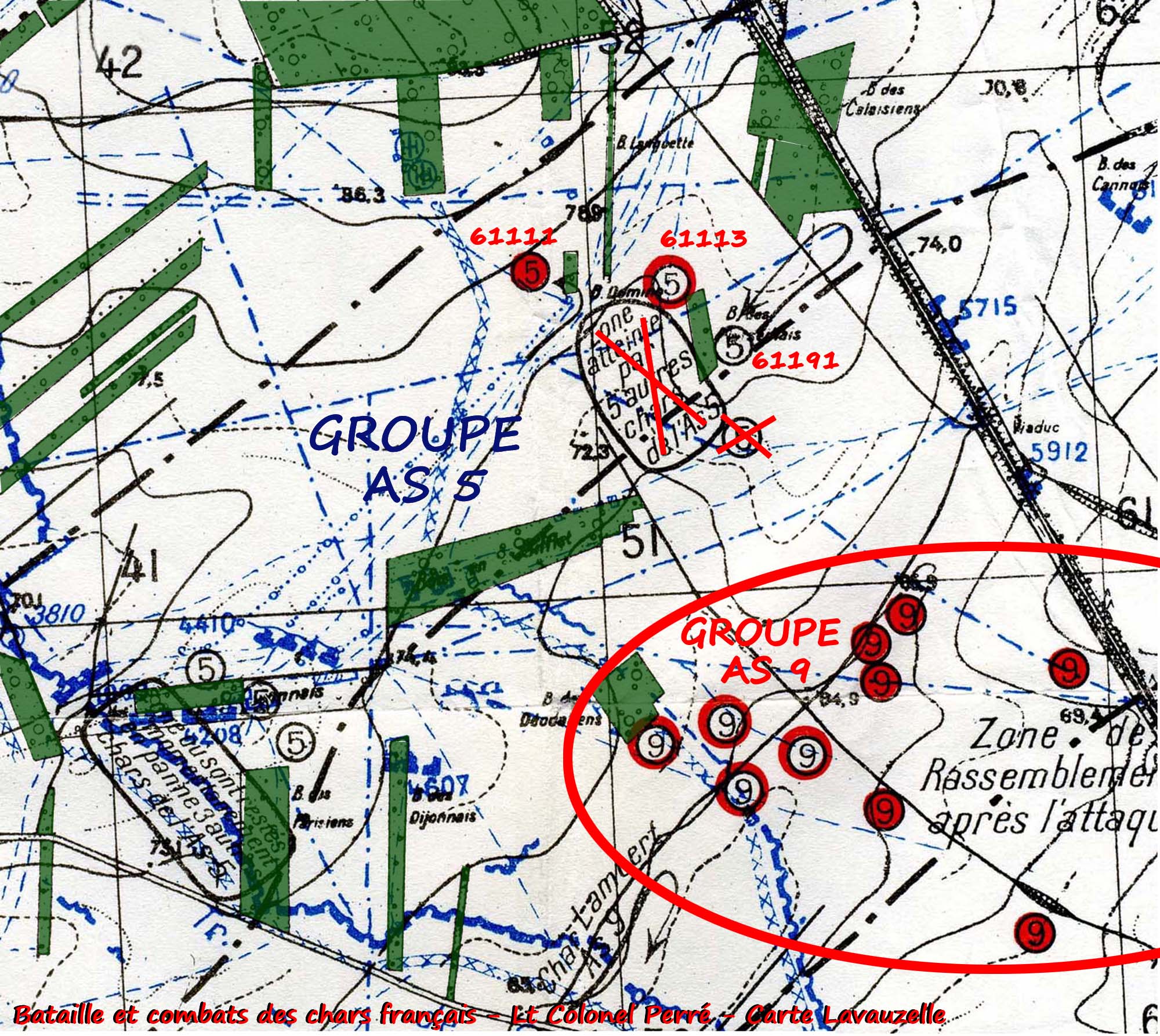 Dans les rapports de récupérations de char du Groupe AS 5, à propos des chars tombés, en panne au retour du Groupe, vers la tranchée du ruisseau, le 61191 n'est pas cité.