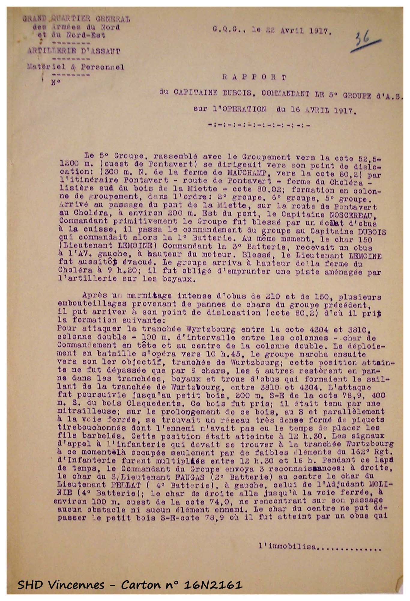Il est, par chance, cité dans ce rapport de 2 pages (SHD - carton 16N2161), rapport aussi reproduit dans le JMO de l'AS 5 (SHD - JMO n° 26N1244-8 pages . . . . .)