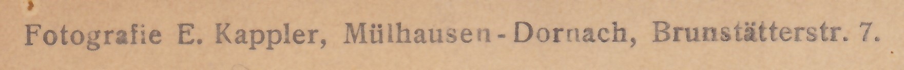 Pas de correspondance au dos hélas mais il y a le nom et l'adresse d'un studio local "Fotografie E. Kappler. Mülhausen-Dornach, Brunslätterstr. 7. ". La carte a été découpée aux angles et grade la trace de trous de punaises.
