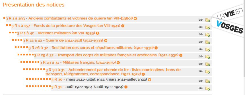 Pour le département des Vosges, il semble que les archives soient conservées sous les cotes 3 R 30 et 31 (pour les militaires français) :