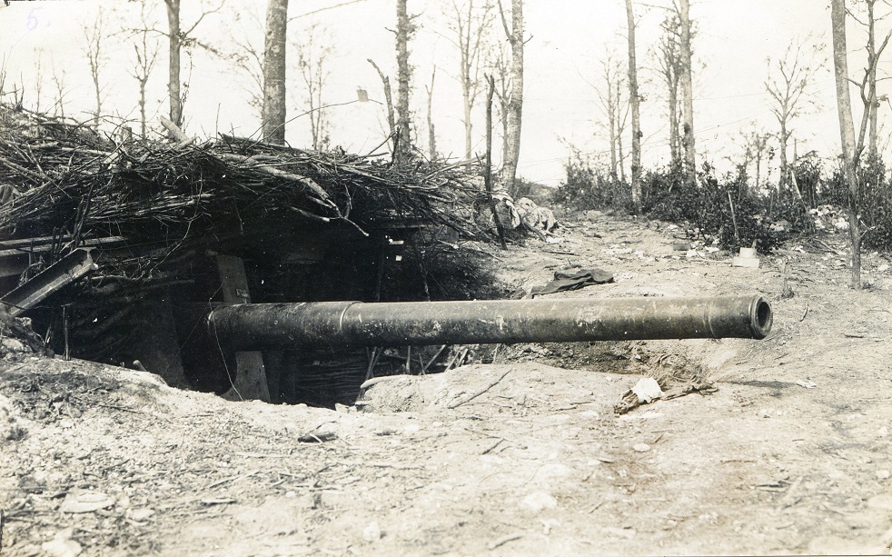 Mes premières recherches me font penser qu'il s'agit du canon de marine du bois de l'Herbebois qui aurait pu harceler les arrières allemandes dans ce secteur d'autant plus qu'il y avait une gare allemande à proximité du village de Billy.