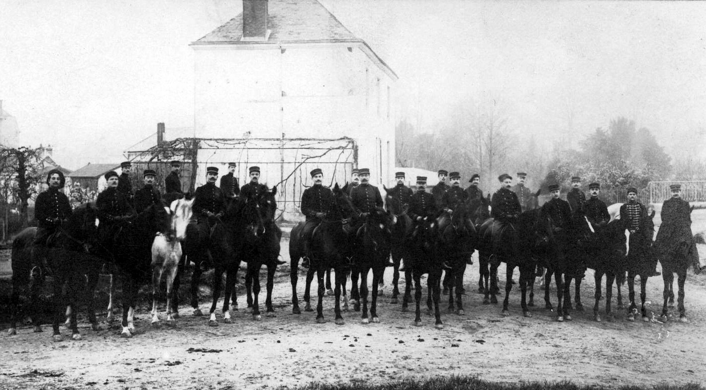 A droite, sur cette photo d’un cours d’équitation (entre 1904 et 1910), on peut voir un cavalier portant le dolman des compagnies de remonte :